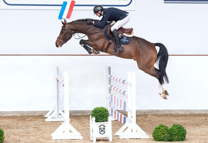 Ein deutlich gutes Ergebnis – und zugleich das zweitbeste des gesamten Durchgangs – lieferten Arne van Heel und Kantato bei der Kurz-Veranlagungsprüfung in Vechta Anfang 2025: Kantato erhielt eine gewichtete springbetonte Endnote von 8,63. Gleich drei Mal wurde die Einzelnote 8,8 vergeben – und zwar für seine Springanlage, Rittigkeit und Leistungsbereitschaft. Arne van Heel setzte den damals Vierjährigen gekonnt in Szene. „Der Hengst hat sich hier von seiner allerbesten Seite gezeigt“, lautete der Richter-Kommentar. „Bereits beim Freispringen beeindruckte er mit seiner Übersicht am Sprung und auch unter dem Reiter glänzte er mit Springvermögen und Rittigkeit“, hieß es. Kantato platzierte sich in seiner ersten Turniersaison in Springpferdeprüfungen der Klasse A* und A**.