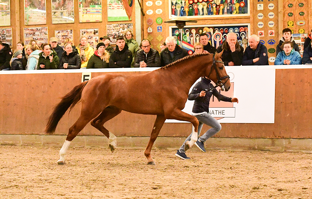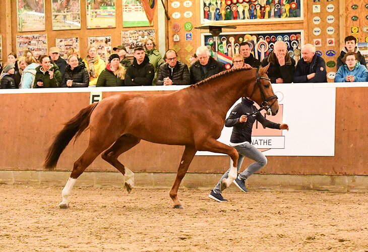 Ein Junghengst von internationalem Format, der begehrte Sportgene mit dem gewünschtem Holsteiner Blutanschluss in besonderer Form verbindet. Dieser typstarke Fuchshengst besticht durch gute Grundgangarten mit sehr guter Balance, vor allem im Galopp. Am Sprung ist er mit schnellen Reflexen und Vermögen ausgestattet, was er nun auch unter dem Reiter unter Beweis zu stellen beginnt. Ein Vererber der Zukunft mit bedeutender Präsenz durch Typ und Charisma. Und sein erster Fohlenjahrgang lässt mit einer Vize-Landeschampionesse Züchterherzen höherschlagen.