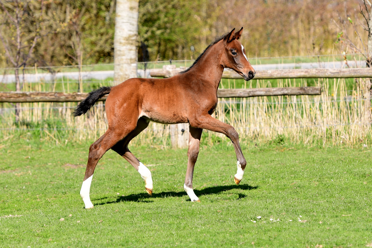 Keaton fällt immer wieder mit sehr interessanten, typvollen Fohlen auf. Seine Kinder sind mit deutlichem Bewegungspotential und hoher Elastizität ausgestattet. Für die Holsteiner Fohlenauktion im Rahmen des Deutschen Spring-Derbys in Hamburg wurde ein Keaton-Cassiano Stutfohlen selektiert und für 14.000 Euro zugeschlagen. Bei der Fohlenauktion Tomorrow’s Champions in Warendorf wurde eine Keaton-Tochter für 18.000 Euro veräußert. Im schwedischen Falsterbo wechselte 2025 ein Hengstfohlen (MV. Cascadello I) für 12.000 Euro den Besitzer. Mit diesem Hengstanwärter gibt es hoffentlich ein Wiedersehen auf der Körung, denn sein neues Zuhause ist eine der größten Hengststationen Europas.