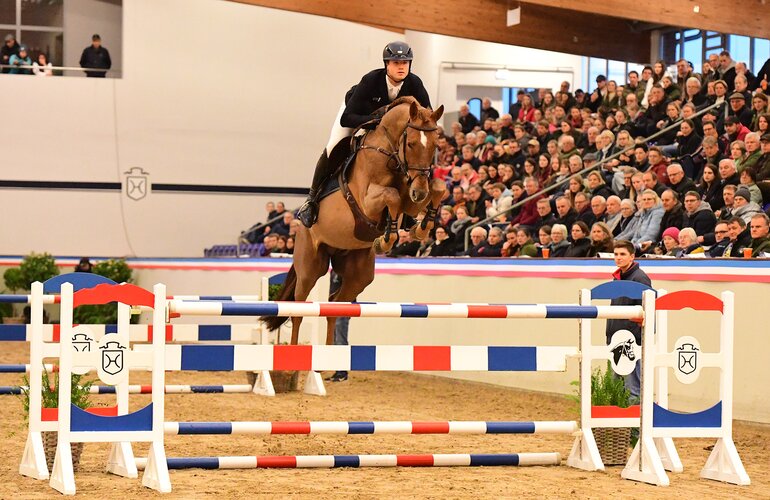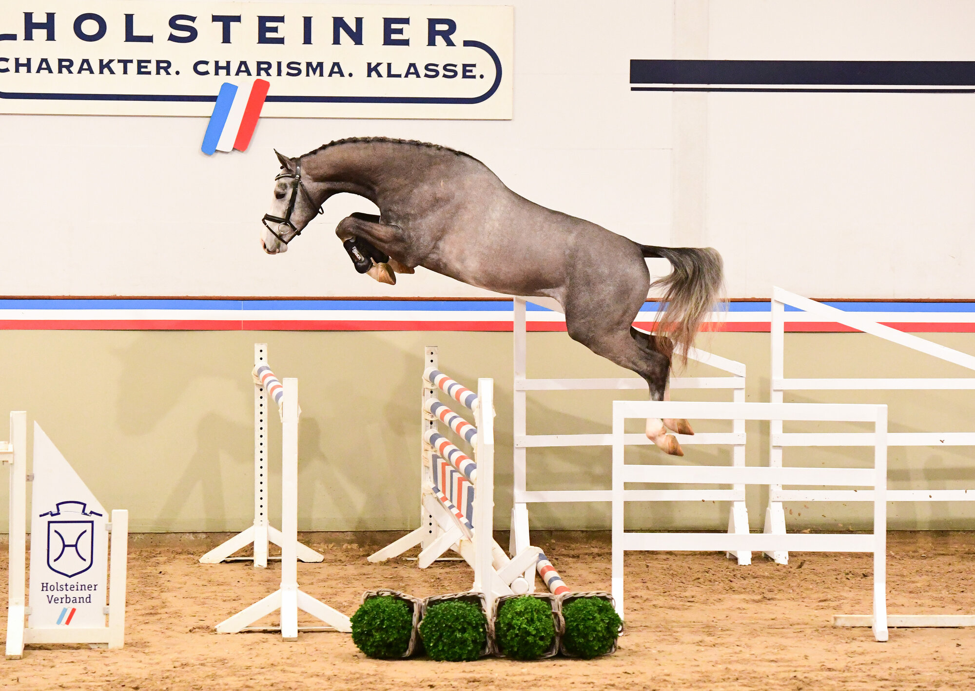 Unter den Hengsten befanden sich die mit Spannung erwarteten jetzt dreijährigen Neuzugänge der Verbandshengsthaltung, die in der Freispringreihe ihr Können unter Beweis stellten. Der Siegerhengst Conchezz v. Colestus, Cognac v. Comme il faut, Keaton II v. Kannan sowie der dressurbetonte Bonduel v. Bonds bestätigten die positiven Eindrücke von ihrer Körung im Dezember oder wuchsen sogar über diese hinaus. Weiter ging es im Kurzparcours für die vierjährigen und älteren Hengste, die allesamt von den Reitern Arne van Heel, Lucas Wenz, Mathies Rüder und Tjade Carstensen in Idealweise in Szene gesetzt wurden. Nicht fehlen durften natürlich auch die Hengste, die schon mit ihren Nachkommen auf internationalem Turnierparkett für ihre Vererbungsleistung Werbung machen, unter ihnen Stars wie Casall v. Caretino, Clarimo v. Clearway oder auch Uriko v. Untouchable.