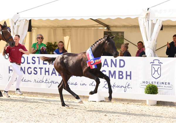 Die Holsteiner Verband Hengsthaltungs GmbH richtet das R+V Holsteiner Landesfohlenchampionat seit vielen Jahren als Veranstalter aus. Geschäftsführer Sebastian Rohde fand ein positives Resümee: „Wir haben ein Lot gesehen, aus dem sich die Jahrgangsspitze deutlich herauskristallisiert und das genetisch einen guten Querschnitt der Holsteiner Zucht dargeboten hat“, findet er. „Besonders erfreulich ist die Balance von etablierten Vererbern und Jung- sowie jüngeren Hengsten, die ihre Nachkommen geschickt haben.“ Zum ersten Mal wollte man bewusst auch den Galopp der Fohlen zeigen und in die Bewertung einfließen lassen. „Sport und Zucht gehören zusammen und die Wichtigkeit eines gutes Galopps für Sportpferde ist uns allen längst bewusst“, begründet Rohde diesen Schritt. Schecks für die Siegerfohlen hat die R+V Generalvertretung Edzards und Stapelfeldt vergeben. Hochwertige Ehrenpreise für Sieger und Platzierte wurden von Bense & Eicke, ClipMyHorse.tv, LKD Hauke Ahsbahs und Salvana Pferdefutter, sowie Deckgeldgutscheine für jedes teilnehmende Fohlen von der Holsteiner Verband Hengsthaltungs GmbH gesponsert.