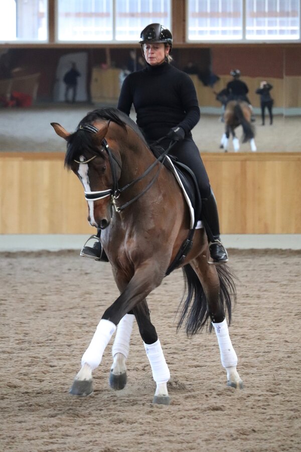 Seit Ende 2020 befindet sich Verbandshengst Clarksville v. Cascadello-Canto (Norbert Frings, Itzehoe), Stamm 318D2, zur weiteren Ausbildung im Stall von Olympiasiegerin Isabell Werth. Bei einem Besuch von Geschäftsführer Sebastian Rohde mit den Vorstandsmitgliedern Dr. Maximilian Slawinski und Jürgen Schaffner in Rheinberg hat die neunfache Weltmeisterin von den Fortschritten des Hengstes berichtet.