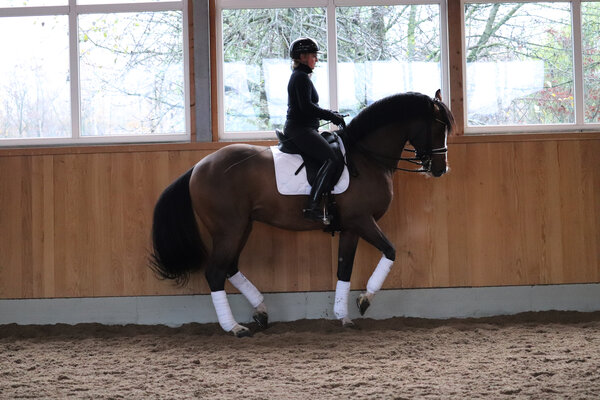 „Clarksville findet sich in seinem Körper mittlerweile immer besser zurecht“, freut sich Werth über den Braunen, der im Stall von allen „Clarki“ gerufen wird. „Er ist angekommen. Ein Pferd mit so gewaltigen Bewegungen profitiert von gesteigerter Tragkraft, die er über die vergangenen Monate gewonnen hat. Er ist schon deutlich geschlossener, geht sichere Traversalen und hat großes Talent für Piaffe und Passage.“ Das präsentierten der großrahmige Braune und Isabell Werth während einer Trainingseinheit eindrucksvoll und mit Leichtigkeit.