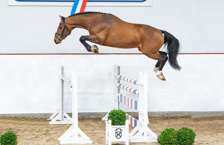 Der Prämienhengst der jüngsten Körung des Holsteiner Verbandes gehörte zu den absoluten Springspitzen des Lots. „Ein herausragendes Springpferd mit großem Vermögen“, begründete Zuchtleiter Stephan Haarhoff die Berufung des Hengstes in das Prämienlot. „Keaton II zeigte sich in jeder Situation mit viel Übersicht und hat jeden Sprung hervorragend abgewickelt.“ Schon sein Vollbruder Keaton I avancierte bei seiner Körung zum Prämienhengst und bestätigt die in ihn gesetzten Hoffnungen sowohl durch die Qualität seiner Nachkommen als auch sportlich in internationalen schweren Springen mit Rolf-Göran Bengtsson im Sattel.