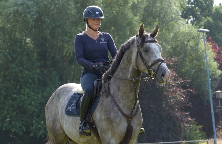 Die dreijährigen Verbandshengste entwickeln sich im Beritt von Minou Eggers und Jayke Junge kontinuierlich weiter – beim abwechslungsreichen Outdoor-Training zeigen sie sich nervenstark und routiniert und dem Sattel.