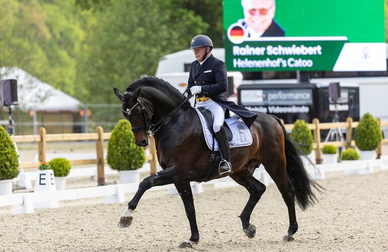 Im Grand Prix tanzten sie mit 69,733 Prozent zum Sieg, im Special waren es 72,39 Prozentpunkte, die das beste Ergebnis markierten. Zwei weitere Siege auf dem Erfolgskonto des einstigen Bundeschampions der Reitpferde, der über TG-Samen bei der Holsteiner Verband Hengsthaltungs GmbH verfügbar ist. Catoos Nachkommen sind sowohl im Parcours als auch im Viereck hocherfolgreich bis zur schweren Klasse unterwegs.