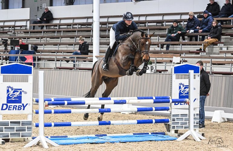 Der Don-Sohn Deichkind reist mit einer Endnote von 8,64 zurück nach Elmshorn. Der Fuchs glänzte unter Lucas Wenz mit hervorragender Rittigkeit, die mit einer Wertnote von 9,0 belohnt wurde. Für den Gesamteindruck gab es eine 8,8, das Vermögen wurde mit 8,6, die Manier mit 8,5 bewertet. „Deichkind präsentiert sich auch heute noch mit viel Saft und arbeitet fleißig mit“, hieß es von den Richtern im Anschluss an den finalen Prüfungsteil, den Fremdreitertest. „Er ist stets aufmerksam beim Reiter und auf den Sprung konzentriert und beeindruckt dabei mit guter ausbalancierter Galoppade.“