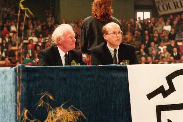 Hans Werner Ritters und Dr. Nissen bei der Körung in Neumünster im Jahr 1991.