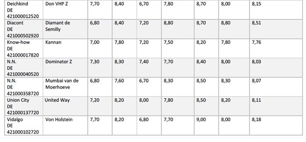 Aufgeführt werden folgend alle Holsteiner Hengste, unabhängig von ihrem Körstatus beim Holsteiner Verband und vom Prüfungsergebnis.