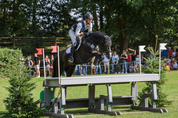 Bentley v. Brantzau-Cascadello I (Stefan Ratajczak) mit Dorothea Feld, 9. Platz bei den fünfjährigen Vielseitigkeitspferden