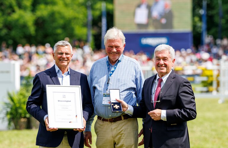 „Otto Becker und ich bewundern dein Wissen, deine Fähigkeiten, dein Gefühl für Reiter und Pferd. Deine Expertise floss immer in die Entscheidung des Ausschusses mit ein. Nichts ist wichtiger als einen Mann des Sports, der Praxis an dieser Stelle zu haben.“ Nach der vergangenen Wahlperiode hat Dr. Michael Rüping sich entschieden, nicht mehr für den Springausschuss zu kandidieren. „Das ist schade. Wir vertrauen auf dein Urteil und schätzen deine Nähe, nicht nur sportlich, auch menschlich.“ Ein Trost: Philipp Rüping, der Sohn von Dr. Michael Rüping, ist nun als Aktiven-Vertreter im Springausschuss.