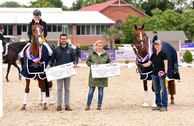 Aus derselben Zuchtstätte wie Kaviera und ebenfalls aus einer Aljano-Mutter – wenngleich aus dem Stamm 7126 – geht die frisch gekürte Holsteiner Landeschampionesse Lissara hervor. Ihr Vater ist Lissaro van de Helle. Im Sattel der sechs Jahre alten Stute saß ebenfalls Sonja Marie Ellerbrock. Zweimal vergab das Richterteam Noten im guten Bereich: Für die Durchlässigkeit (8,5) und den Gesamteindruck (8,0). 7,8 lautete das Gesamtergebnis. Damit wiederholte Lissara ihren Triumph aus dem vergangenen Jahr, als sie bereits einmal mit der Siegerschärpe im Landeschampionat dekoriert wurde. Nur knapp dahinter rangierte mit Christina Ellendt im Sattel der Oldenburgerin Bella Rouge H v. Bordeaux-Don Primero aus der Zucht von Magret Heissmann (7,7) und der Hannoveraner Duke Ellington v. Dante Weltino-Alabaster (7,4/Daniela Steen) unter Janet Maas.