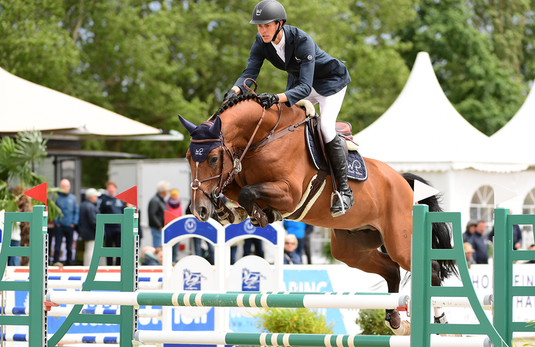 Am Ende stellte das Richterkollegium zwei gekörte Hengste als Sieger mit jeweils einer Wertnote von 8,8 heraus. Zum einen war das Dunkirk v. Dinken-Catoki (Sönke Petersen, Behrendorf), Stamm 741, den Marten Witt mit einer blitzsauberen Runde zum Sieg pilotierte. Die zweite Siegerschleife ging an Copino VA v. Cooper I-Coriano (Manfred von Allwörden, Grönwohld), Stamm 5064, unter dem Sattel von Diarmuid Howley. Spannend wird es am Sonntag um 15:00 Uhr wieder für die Sechsjährigen, denn dann steht ihr Finale, eine Spezialspringpferdeprüfung der Klasse M** auf dem Programm.