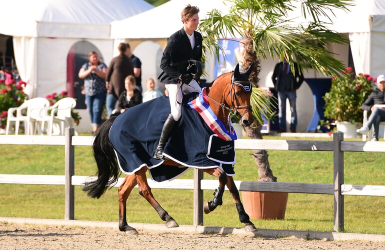 Mit den Wertnoten 9,0 und 9,2 in den beiden Umläufen der finalen Springpferdeprüfung Klasse M – Preis der Holsteiner Verband Hengsthaltungs GmbH – stellte Diarmuid Howley den Fuchshengst Valenzano als deutlichen Sieger der Altersklasse heraus. Der Sohn des Vagabond de la Pomme-Christian (Kai Wullweber, Todesfelde), Stamm 6582, steht im Besitz von Manfred von Allwörden. Sein irischer Bereiter setzte ihn gekonnt in Szene: „Genau solche Runden möchten wir sehen“, lobte die Jury. Die Silbermedaille im Championat ging ebenfalls an Diarmuid Howley mit einem Pferd vom Grönwohldhof: Quintino LMK v. Quintago-Clearway (Loenie Kock, Hamburg), Stamm 2428, sprang auf Rang zwei. Dritter wurde das ehemalige Holsteiner Auktionspferd Davis v. Diarado-Casall (Timm Peters, Bargenstedt), Stamm 390, mit Thibaut Huyvaert im Sattel, der für Rolf-Göran Bengtsson reitet.