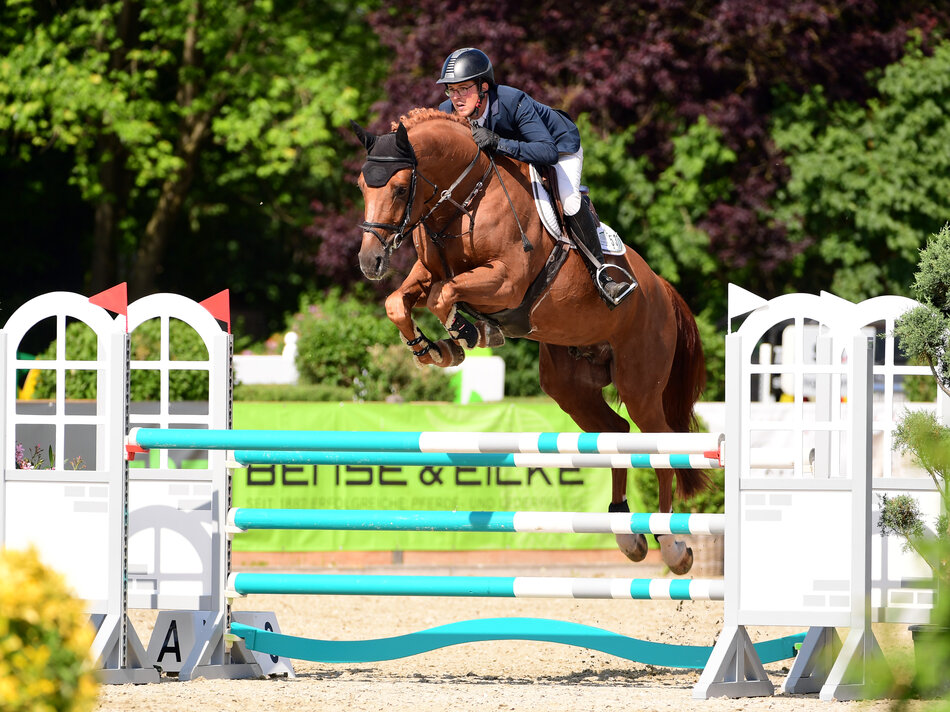 Die sechsjährigen Springpferde zeigen in der Finalprüfung schon einmal, welche Qualitäten für die schwierigeren Aufgaben sie vorzuweisen haben, wenn sie in der Spezialspringpferdeprüfung der Klasse M** mit Stechen – Preis des Gestüts Grönwohldhof – antreten. Nachdem sie im Umlauf eine Wertnote erhielten, folgte ein Stechen um Sieg und Platzierungen. Tiepolo v. Toulon-Cassini I (Jürgen Böge, Bunsoh), Stamm 7492, beendete den Stechparcours mit Hannes Ahlmann im Sattel als Schnellster. Platz zwei ging an Iowa v. Barcley-Cassilano (Hans-Adolf Witthöft, Preetz), Stamm 5167, und Jesse Luther. Carlesta v. Casall-Corrado I (Joachim Jürgens, Bollbrügge), Stamm 42B, und Sven Gero Hünicke rangierten an dritter Stelle.