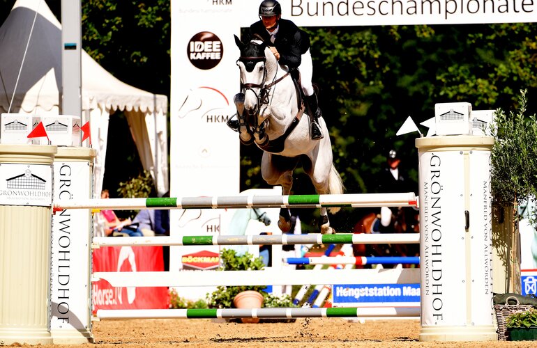 Er war bereits bei den Bundeschampionaten hocherfolgreich unterwegs – damals unter dem Sattel von Richard Vogel – und setzt auch mit Sophie Hinners seine Karriere auf hohem Niveau fort: Munin v. Mylord Carthago-Chin Chin (Michael Eitel, Freihung) gewann mit der Amazone gleich zwei Prüfungen in Kronenberg (NED): In zwei 1.45 Meter-Springen führte der Schimmel die Siegerehrung an.