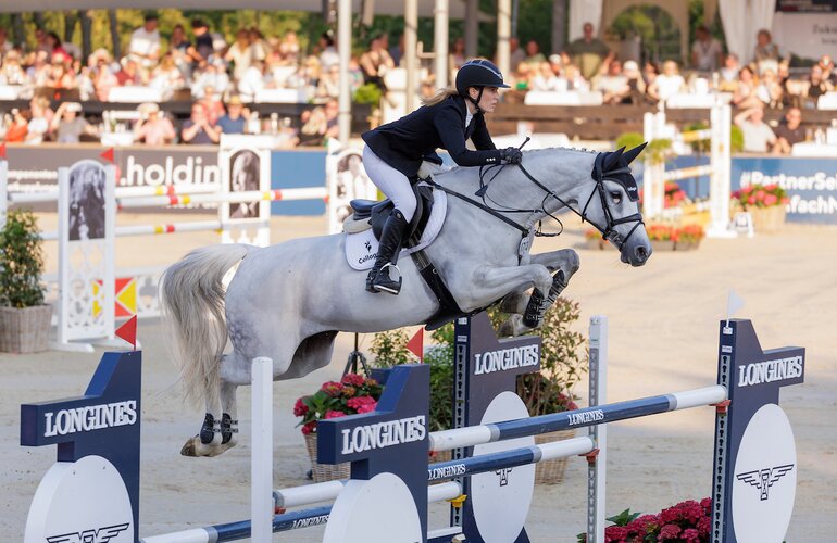 Mit dem Stamm 4847 hat Familie Meyer aus Nottfeld schon einige Zuchterfolge gefeiert: Aus diesem Zweig geht nicht nur der einstige Holsteiner Siegerhengst Esmeraldo v. Emerald van het Ruytershof hervor. Er ist auch der Halbbruder von Cornela v. Cornet Obolensky-Caretino (Friedrich Meyer). Die Schimmelstute gewann nun vor Augen der gesamten Familie mit Janne Friederike Meyer-Zimmermann in Oliva Nova ein Springen über 1,45 Meter.