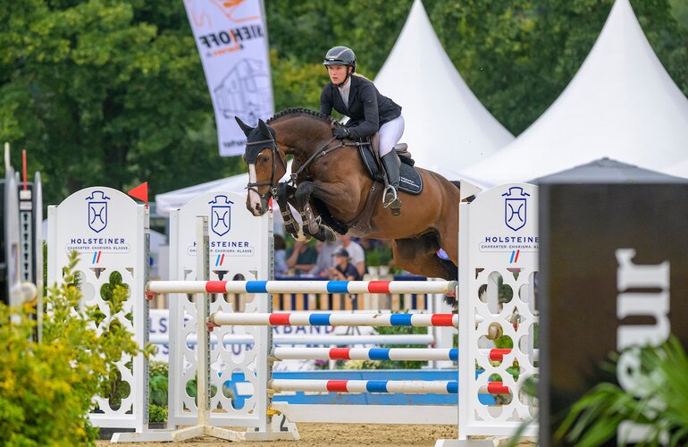 Am Freitag stand die zweite Qualifikation der fünfjährigen Springpferde auf dem Programm. Hier konnte ein Holsteiner den Sieg in der zweiten Abteilung verbuchen. Mr. Million v. Million Dollar-Cash and Carry (Jörg Carstensen) erhielt mit Teike Carstensen im Sattel die Wertnote 8,9 und damit die goldene Schleife. Platz zwei sicherten sich Momo VA v. Diamant de Semilly-Clarimo (Manfred von Allwörden) und Diarmuid Howley.