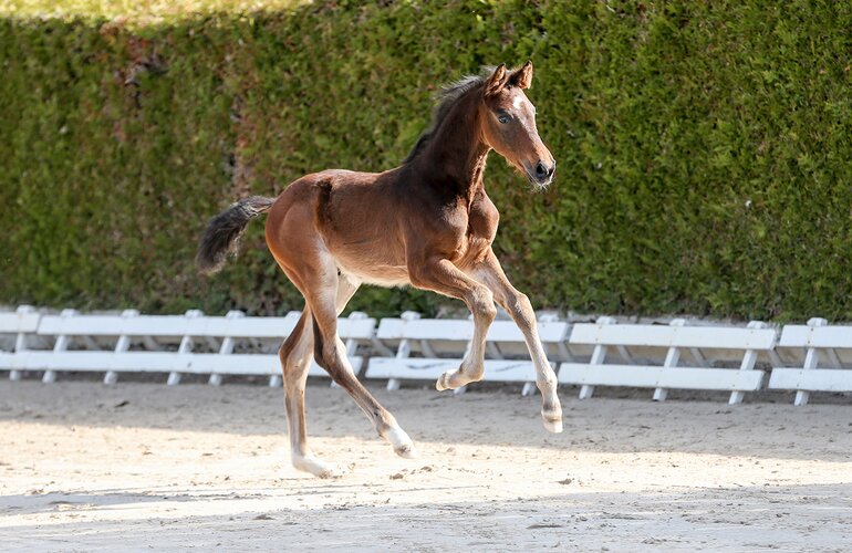 Und die Kollektion kann sich sehen lassen – die Kandidaten stehen für hochinteressante Genetik in puncto Zucht und Sport. So zum Beispiel die Katalognummer 1, Cappuccino v. Cahil-Untouchable. Die Großmutter dieses Hengstfohlens stellte mehrere auf höchstem Niveau erfolgreiche Sportler – unter anderem Oak Grove’s Carlyle v. Casall, der die Großen Preise von Rotterdam, Valkenswaard (NED) oder den Nationenpreis in Vancouver (CAN) mit Daniel Coyle (IRL) gewann. Die Eigenleistung von Stuten ist in den vergangenen Jahren immer mehr in den Fokus der Züchterschaft gerückt und so kann auch die Katalognummer 9, ein Stutfohlen v. Crack-Casall mit Namen Rosalie, mit Canadia I.Z. eine Mutter mit Erfolgen in 1,50 Meter-Springen unter Clarissa Crotta (CHE) vorweisen. Mit Chirico (Katalognummer 11) beritt ein weiterer Nachkomme des Crack aus einer Del’ Arko d’Henvet-Mutter das Auktionsparkett: Dieser Hengst stammt aus direkter Verwandtschaft des WM- und Weltcup-Pferdes Quno v. Quo Vados I, das Top-Pferd des jungen Schweizers Edouard Schmitz. Zwei dressurbetonte Fohlen bereichern das Lot: Die Katalognummer 15 mit Namen Gucci, die vom Weltmeister Glamourdale (Charlotte Fry/GBR) aus einer Zhivago-Mutter abstammt. Und die Katalognummer 16, Idol v. Infantino, aus einer Borsalino-Mutter und weiter über den Starvererber Fürstenball angeschlossen. Die Auktion wird am Samstag, den 10. Juni 2023, um 16:30 Uhr im Hybrid-Format auf dem Herbert Blöcker Platz ausgerichtet. Im Vorfeld werden sich die Fohlen um 13:00 Uhr erstmals live präsentieren. Wenn Sie die Holsteiner Pferdetage bereits am Freitag (9. Juni) live vor Ort verfolgen, lädt der Welcome Evening ab 20:00 Uhr zum Verweilen ein. Bei Live-Musik mit E-Geiger Vio-Leen, gastronomischen Angeboten am Turnierplatz und Cocktailstand mit Sonnenterrasse kann der Abend in entspannter Atmosphäre ausklingen.