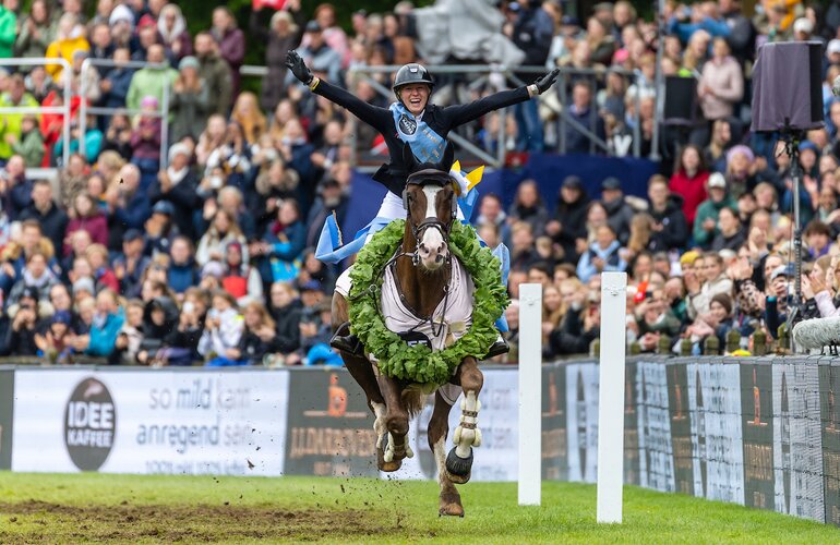 Die Frühjahrsauktion findet am 23. März 2024 in Elmshorn als Hybrid-Versteigerung statt. Hier haben schon einige Holsteiner Erfolgsgeschichten begonnen, die sich einige Jahre später auf den Titelseiten der Pferdesportmagazine, im Fernsehen oder dem World Wide Web wiedergefunden haben: Zum Beispiel die von Dacara E – Derbysiegerin unter Cassandra Orschel. Für die Reiterin ist beim Deutschen Spring-Derby in Hamburg im Mai 2022 ein Traum in Erfüllung gegangen, mit dem sie „niemals gerechnet hatte“. Denn die Amazone konnte als fünfte Frau überhaupt den Sieg im 91. Derby davontragen. Ihre Sportpartnerin dabei war Dacara E v. Cancara-Caretino aus der Zucht von Gerd Eggers aus Stadum. 2016 hatte Cassandra Orschel die Fuchstute auf der Holsteiner Frühjahrsauktion entdeckt. Seitdem bildete sie Fuchsstute behutsam aus. Den Titel der Landeschampionesse sicherten sie im folgenden Jahr und wurden 2020 Landesmeister bei den Damen in Bad Segeberg. Die für Polen startende Hamburgerin und Stute sind eigentlich gar keine Derby-Spezialisten, sondern vielmehr in Springen bis 1,60 Meter national und international hocherfolgreich. Sie waren im vergangenen Jahr sogar für Polen bei den Europameisterschaften in Mailand (ITA) am Start.