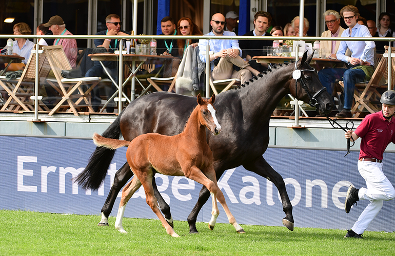 Elf Fohlen kamen am Himmelfahrtsdonnerstag auf dem Hamburger Derby-Platz zur Versteigerung: Zur Preisspitze avancierte ein Sohn des Ermitage Kalone mit Namen Espartaco: Das Hengstfohlen mit der Katalognummer 2 wechselte für 20.500 Euro nach Österreich.