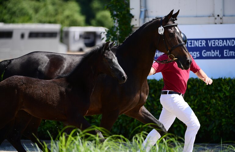 Am Abend stand der Herbert-Blöcker-Platz ganz im Zeichen der Jüngsten. 21 Fohlen des aktuellen Jahrgangs kamen zur Versteigerung. Zur Preisspitze avancierte die Katalognummer 9, Rosalie v. Crack-Casall (Achaz von Buchwald, Hamburg). Für 16.500 Euro wurde diese Tochter der international erfolgreichen Canada I.Z. (Clarissa Hassmann Crotta/SUI) zugeschlagen. Zwei weitere Fohlen waren den Kunden 10.000 Euro oder mehr wert. Zum einen war das die Katalognummer 4, C’est la Vie v. Charaktervoll-Barcley (Heiko Clausen, Nieblum/Föhr) aus dem berühmten Cassini-Stamm 3389 (10.500 Euro). Und zum anderen kostete die Katalognummer 3, Rhapsodie v. Casall-Clearway (Jan-Kuhrt Stegemann, Eesch) glatte 10.000 Euro. Der Durchschnittspreis der verkauften Fohlen lag bei 8.166 Euro. Am Sonntag stehen nun noch die Verbandsstutenschau sowie die Landeschampionate der fünf und sechs Jahren alten Springpferde auf dem Programm. Los geht’s um 9:00 Uhr.