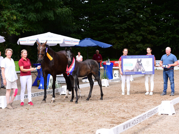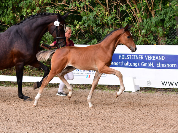 In the dressage foal division a foal with proven genetics won: The full brother to the Holstein Verband stallion and multiple State Champion Fidano by Fidertanz-Silvano from the breeding station of ZG Pflügler in Weddingstedt (Stamm 776) was crowned the winner. "A very correct and elastic foal with a good hind leg," commented judge Maren Schlender. This stallion prospect - just like his brother who qualified for the Bundeschampionat this year - is owned by the Holsteiner Verband Hengsthaltungs GmbH. "We are grateful for the good cooperation with the breeders and consider it valuable to provide Holsteiner dressage horses for our breeders," said Sebastian Rohde. Second place went to a filly by Dimaggio Black-Contender, bred by Horst-Henning Lienau (Haselau), Stamm 1947. The Lass KG from Leck was awarded bronze for their colt by Vitalis-Cormint (Stamm 504). "The quality of the foals was continous convincing," Sebastian Rohde was satisfied. "Especially pleasing was also the ranking of the three best colts, all of them descending from young Verband stallions. We thank our sponsors, breeders and the spectators for this successful championship."
