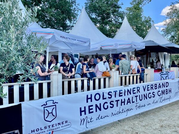 The Holsteiner stand is located directly at the entrance of the show jumping arena. For example, on Wednesday, August 30, following the last jumping competition, the breeding district Europa cordially invites all breeders and friends of the Holsteiner horse to a cozy get-together. With a snack and cold drinks there will be time for good conversations about breeding and sport, so that the evening at the Bundeschampionat can end in a relaxed atmosphere. Of course you can visit us there at any time, ask questions and exchange ideas. The Holsteiner Shop will also be present in Warendorf.