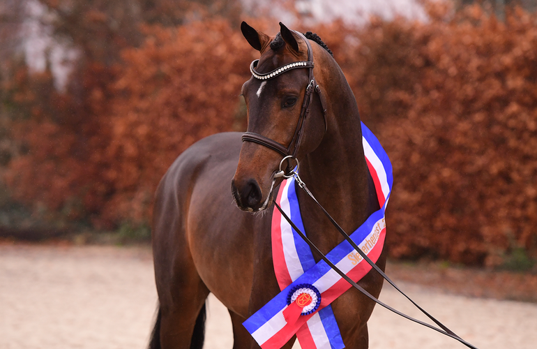 “This stallion impressed us right from the start”, said breeding director Stephan Haarhoff representative of the grading commission, consisting of Christian Thoroe, Matthias Wittke and Horst-Klaus Heleine. “A horse of ultra-modern make and shape with an awesome silhouette. His jumping was also absolutely convincing with quick reflexes, good judgement and boundless ability – a worthy champion stallion.” Lot 45, Uluru by Uricas v/d Kattevennen-Cormint, bred by Caroline Kröger of Wakendorf (owned by Manfred von Allwörden, Grönwohld) became the first reserve champion. “Uluru is a light, typey, and elastic horse with an awesome jump. The stallion has a medium frame but becomes huge at the jump.” Lot 37, Keystone by Keaton-Quinar (Margit Petersen, Sollwittfeld), mare family 3401, received the second reserve champion’s sash and is owned by Sollwitt stallion station and Thomas Petersen (Sollwittfeld). “An outstanding athlete with a lot of cadence, he has seen loads of development since the pre-selection and comes from a very reliable damline”, according to Haarhoff. Four other representatives of the 2021 crop have been awarded the coveted premium title by the grading commission: Lot 12, Chancay by Chinchero-Sir Shutterfly (b.: André Eppinger, Vellahn, o.: Kai Thomsen, Büsumer Deichhausen) and lot 27, Cornetan by Cornet’s Balou-Kannan (Josef Fischer, Bad Griesbach), mare family 2554, same as lot 36, Kantato by Keaton-Casall (Manfred Birchler/SUI), a representative of mare family 104A as well as lot 44, United Pleasure by United Way-For Pleasure (b.: Rita Siebke-Baasch, Sarzbüttel/o.: Vitor Frias/PRT).