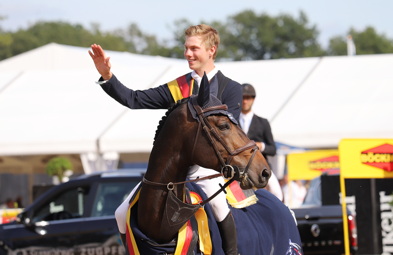 The new Bundeschampion of the five-year-old show jumpers is Vendigo by Van Gogh-Kannan (Rita Siebke-Baasch). Hannes Ahlmann piloted the Holsteiner to dream scores in a demanding final test at M* level with two rounds. The pair was able to increase the 9.0 from round one to a 9.2 in the second round. "I have had Vendigo for a few months, but in that short time we have already noticed how well we fit together," Hannes Ahlmann was pleased afterwards. The silver medal also went to Holstein, to Cassy by Cicero Z-Contender (Elmar Teves) and Richard Vogel with scores of 8.7 and 9.0. The judging panel praised, among other things, the energetic foaling of the chestnut mare.