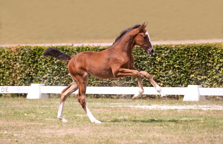 In addition to the 14 foals by Emerald van‘t Ruytershof, Dominator Z, Aganix du Seigneur, Cornet Obolenksy, Chinchero, Chopin, Le Blue Diamond van‘t Ruytershof, Cascadello I, Clarimo, and Jasper, three highly interesting embryos, secured in cooperation with Christoph Zimmermann, will be auctioned on Friday, 5 August, including a full sibling Christian Kukuk’s Olympic horse Mumbai.